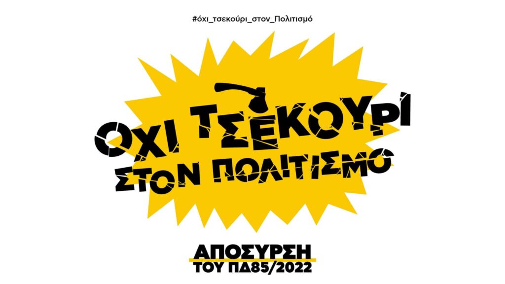 Εδώ και είκοσι μέρες όλος ο καλλιτεχνικός κόσμος βρίσκεται σε συνεχείς κινητοποιήσεις, με αφορμή το προεδρικό διάταγμα που εξέδωσε η κυβέρνηση. Ήδη πραγματοποιήθηκαν κινητοποιήσεις και αντίστοιχες συναντήσεις στα υπουργεία εσωτερικών και πολιτισμού.